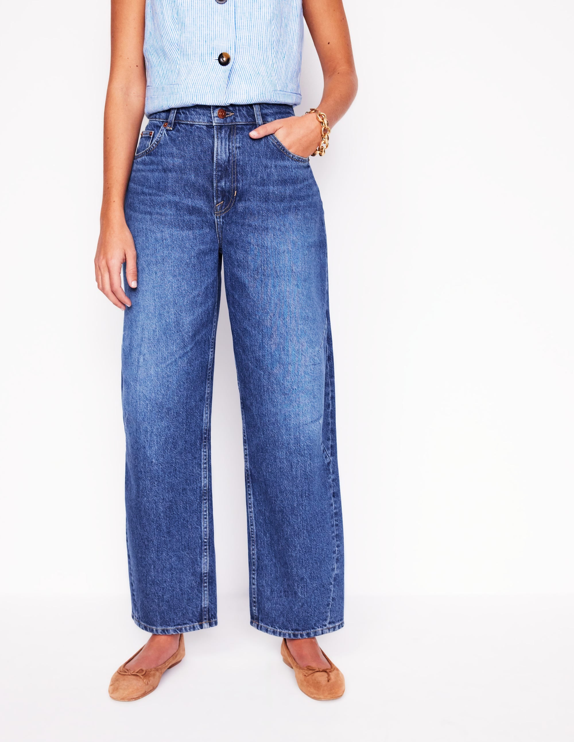 Now barrel leg jeans are a thing it's time to sway you away from straight-leg styles even momentarily. It's all about off-duty comfort and this pair suit all shapes.