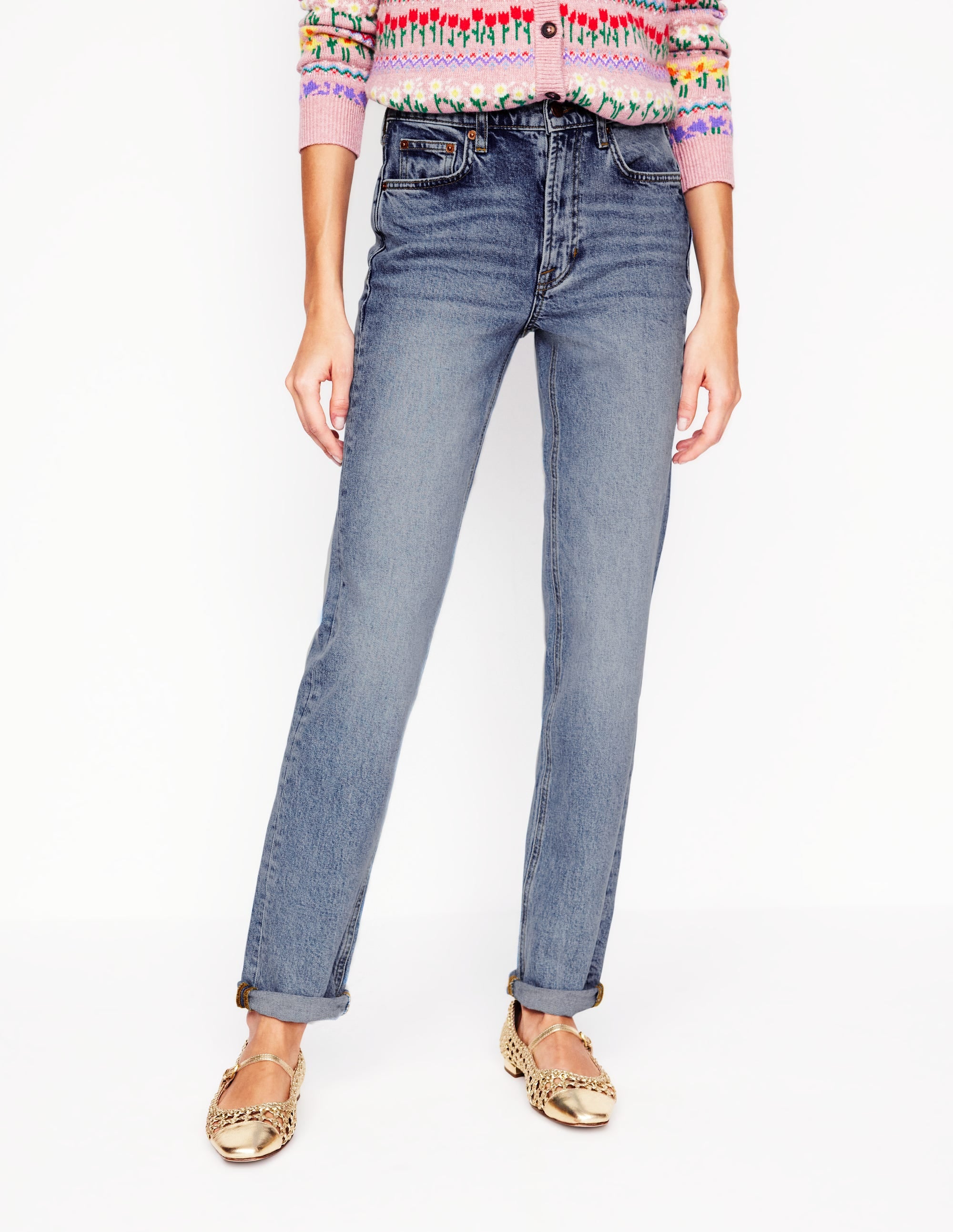 Our laid-back girlfriend jeans know how to deliver a killer combo of comfort and coolness. These jeans take a hint-of-stretch fabric and a relaxed fit, then throw in a mid-rise waist and a choice of washes. The hems are just begging to be rolled up (with a couldn't-care-less attitude, obviously).