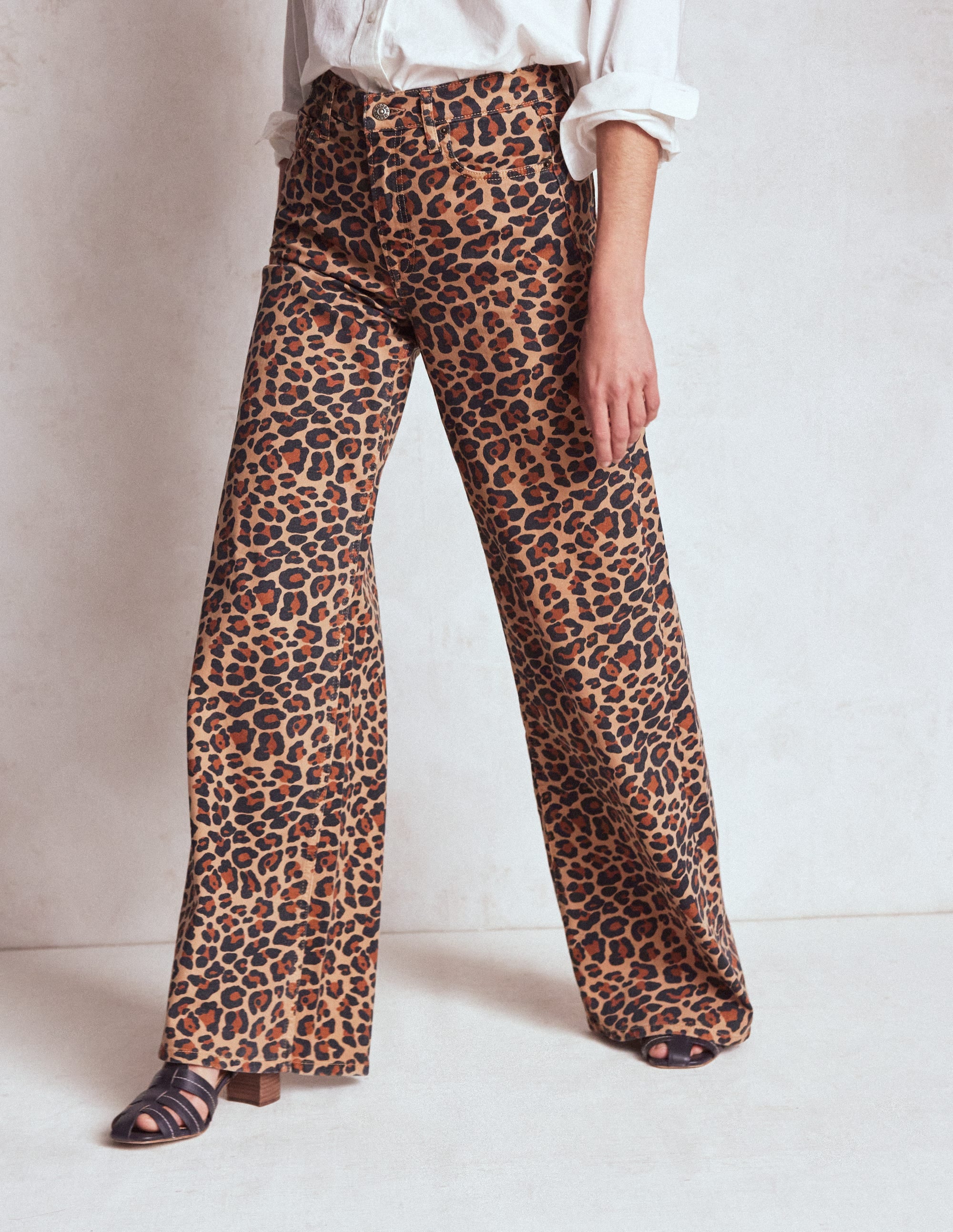 High Rise Wide Leg Jeans-Leopard Print
