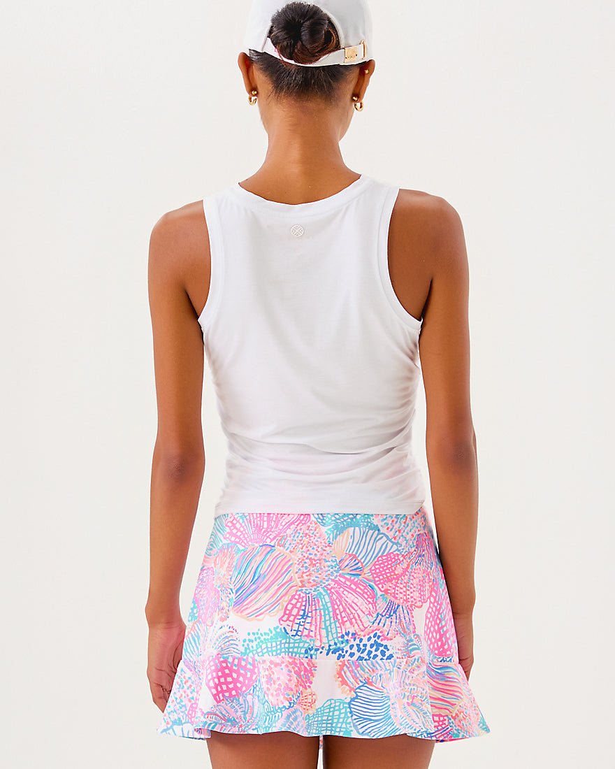 - UPF 50+ Luxletic® scoop neck tank with side shirring details. Made from partially plant-based fabric with long-lasting stretch.